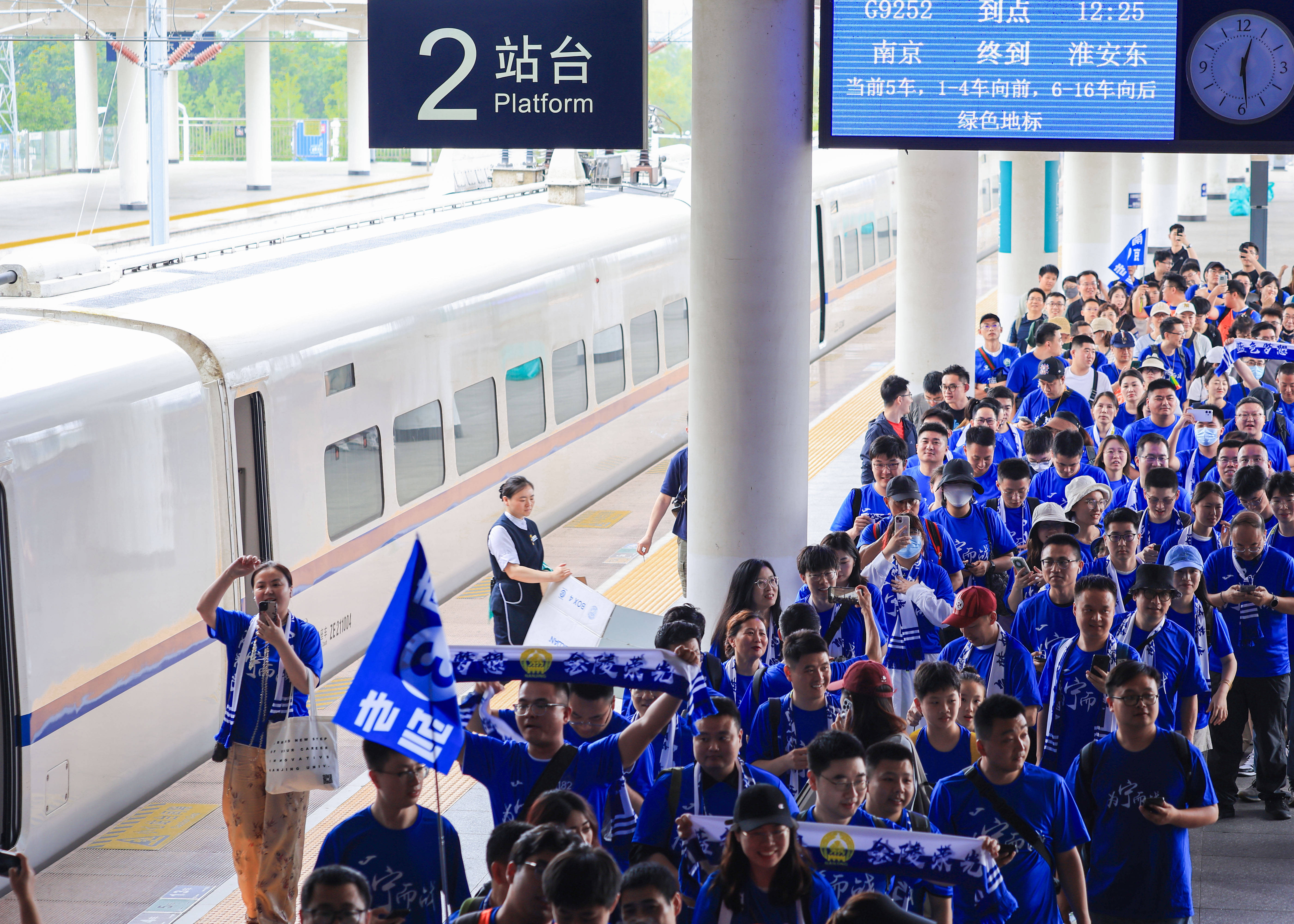 6月14日,铁路部门开行南京站往返淮安东站的长三角首趟“苏超”球迷高铁专列,方便南京球迷前往观赛。新华社发(苏阳 摄)而有为政府,在于有所为,也在于有所不为。